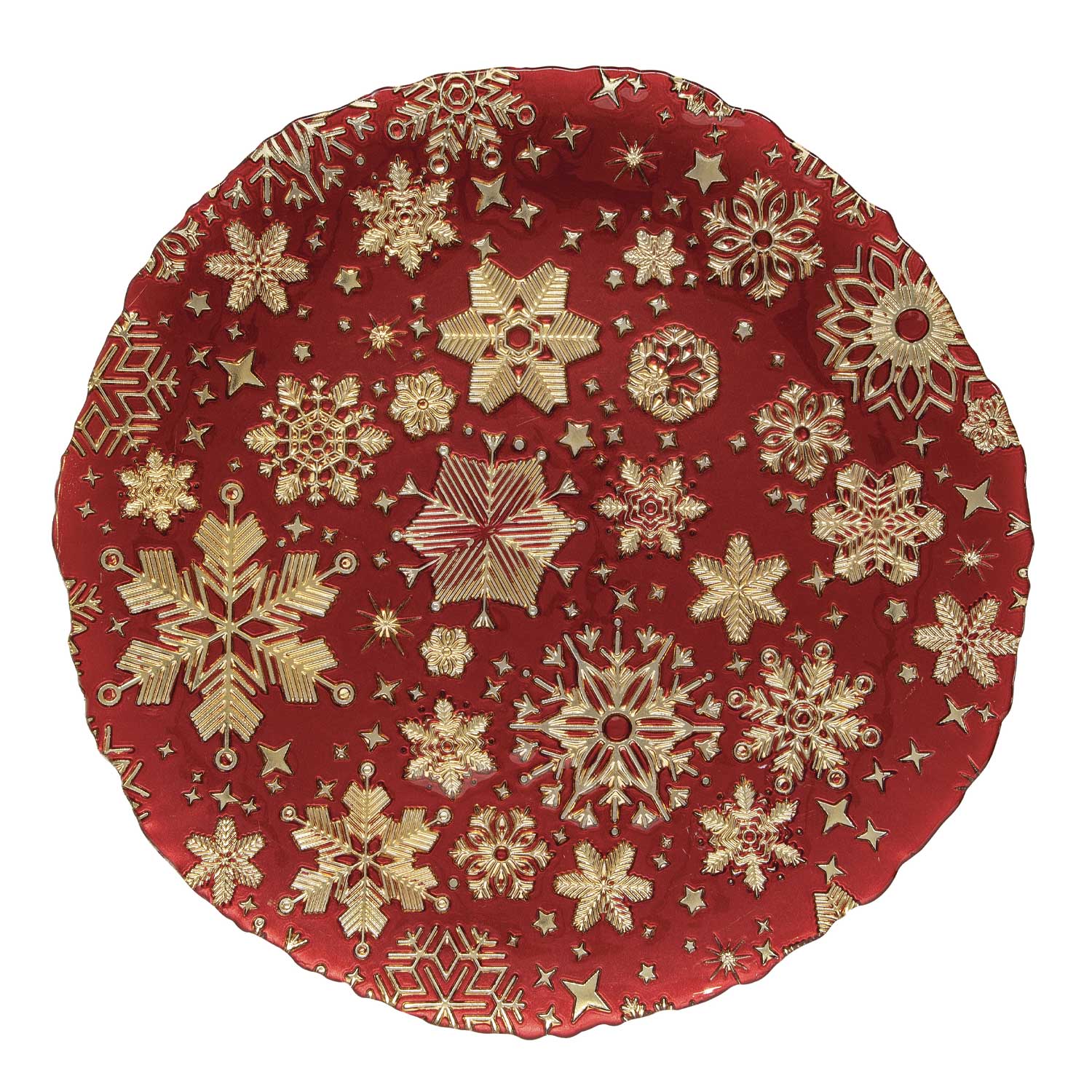 EASY LIFE Piatto Natalizio Rosso con Decoro Oro 33cm Vetro