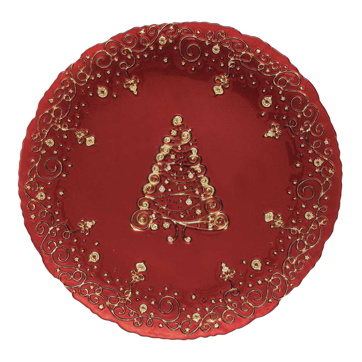 EASY LIFE Piatto Natalizio Rosso con Decoro Oro 33cm Vetro