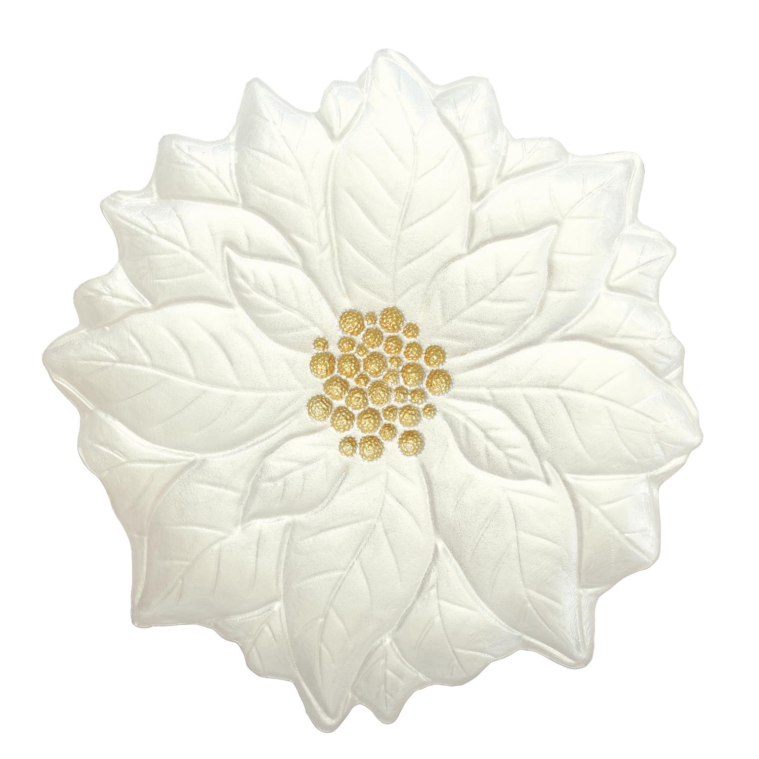EASY LIFE Piatto Natalizio Stella di Natale Bianco con Decoro Oro 31cm Vetro