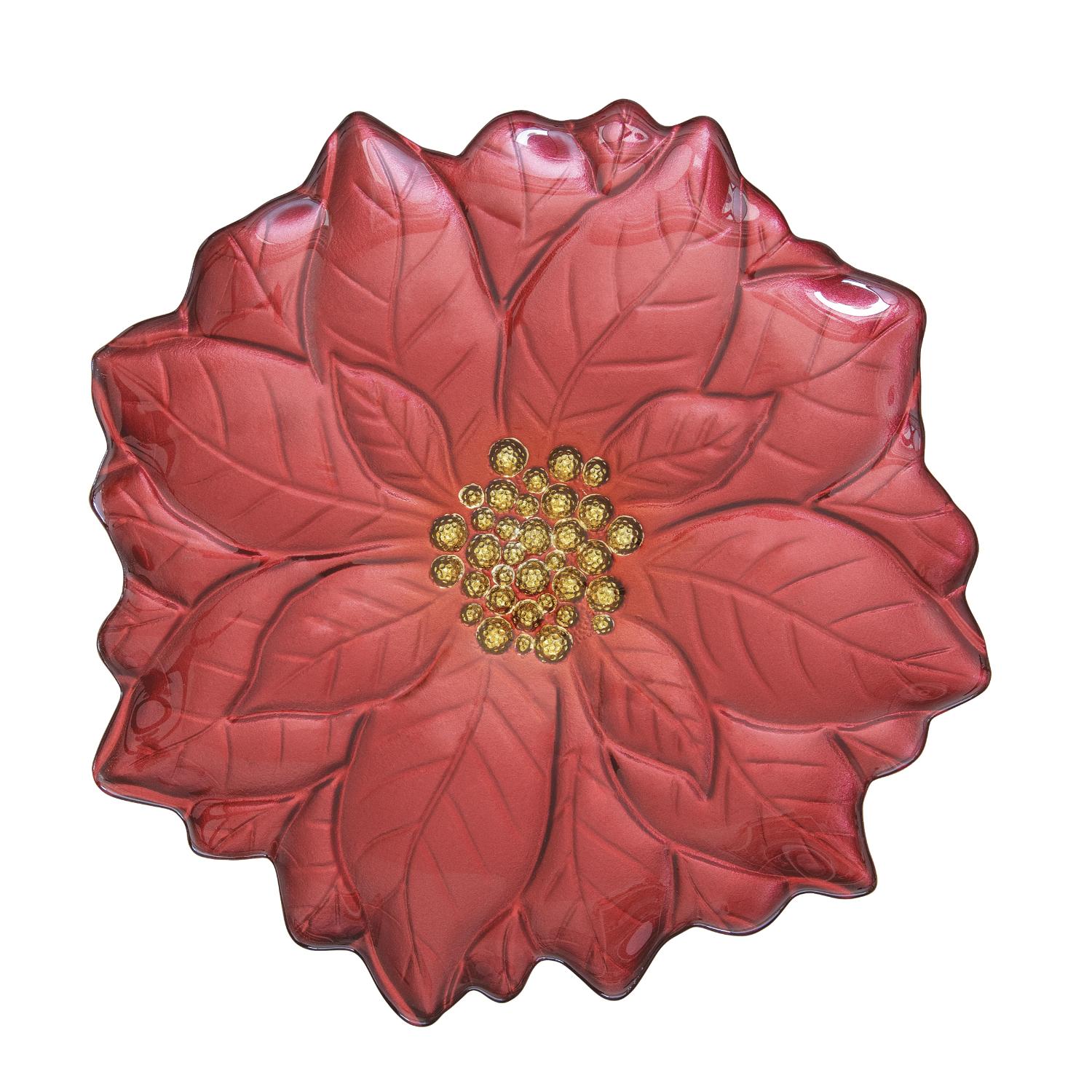 EASY LIFE Piatto Natalizio Stella di Natale Rosso con Decoro Oro 31cm Vetro