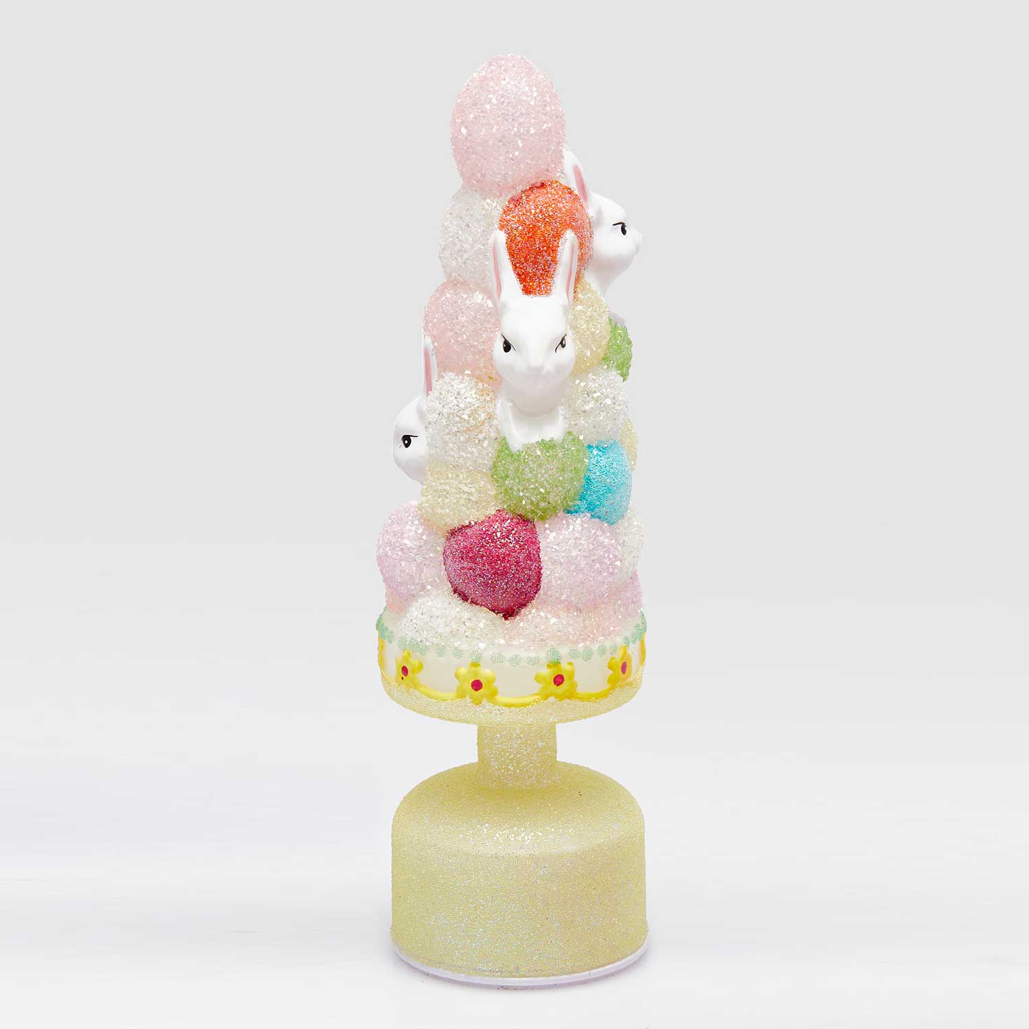 L'albero Twist di Enzo De Gasperi in vetro colorato è una decorazione pasquale unica, caratterizzata da un design dinamico e giocoso: dai rami spuntano piccoli coniglietti, creando un effetto scenografico e originale.