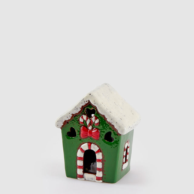 EDG Enzo De Gasperi Decorazione Natalizia Casetta con Led 12x10cm Verde Ceramica