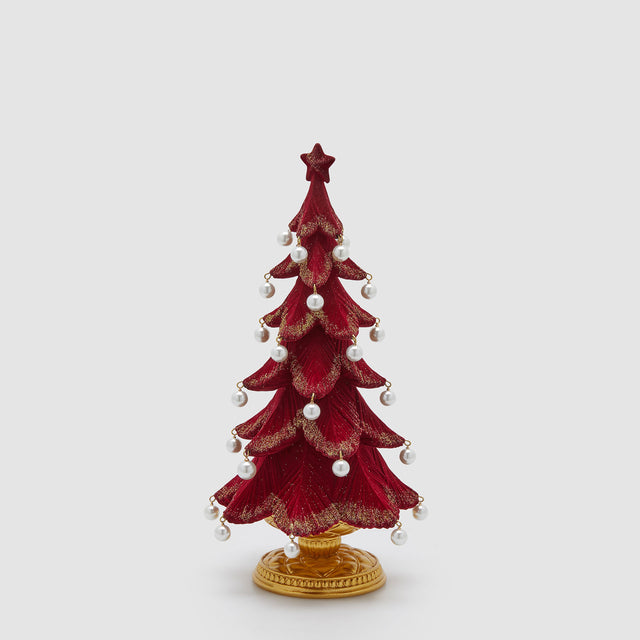 EDG Enzo De Gasperi Pino Albero di Natale con Perle 36x19cm Bordeaux