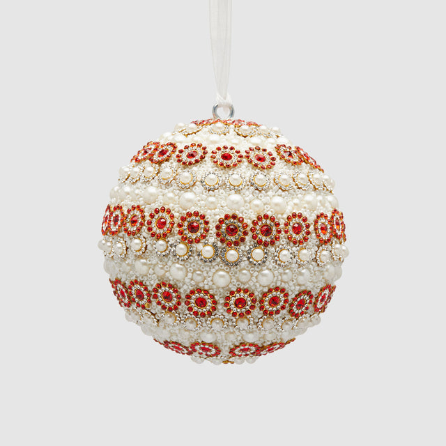 EDG Enzo De Gasperi Sfera Pallina Albero di Natale 10cm Fasce con Gemme e Perle Bianco Rosso