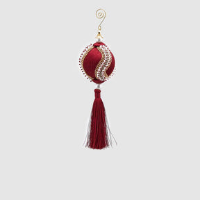 EDG Enzo De Gasperi Sfera Pallina Albero di Natale con Perle 8cm Velluto con Nappa Bordeaux