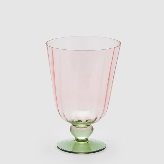 Un mix irresistibile di charme rétro e design contemporaneo: il vaso "Righe" di Enzo De Gasperi conquista con il suo vetro lavorato rosa a coste verticali, elegantemente sorretto da un piede verde smeraldo dal gusto vintage.