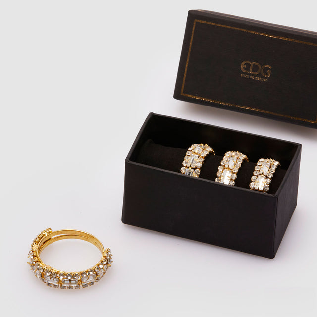 Portatovaglioli di EDG color oro in metallo con brillanti, ideale per apparecchiare in maniera elegante e chic la tua tavola durante le cene di Natale. I portatovaglioli hanno un diametro di 4 cm e sono forniti in una graziosa scatola regalo.