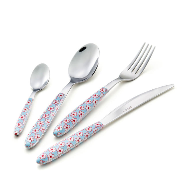 Vero Margarita è una collezione di posate dal design iconico caratterizzata da un piccolo decoro floreale. Il Fiore, simbolo di semplicità, con i suoi petali bianchi e i contorni definiti richiama purezza e bellezza. Il decoro è realizzato con stampa a sublimazione, tecnologia che permette di ottenere un prodotto di qualità, resistente ai graffi e ai decadimenti cromatici.