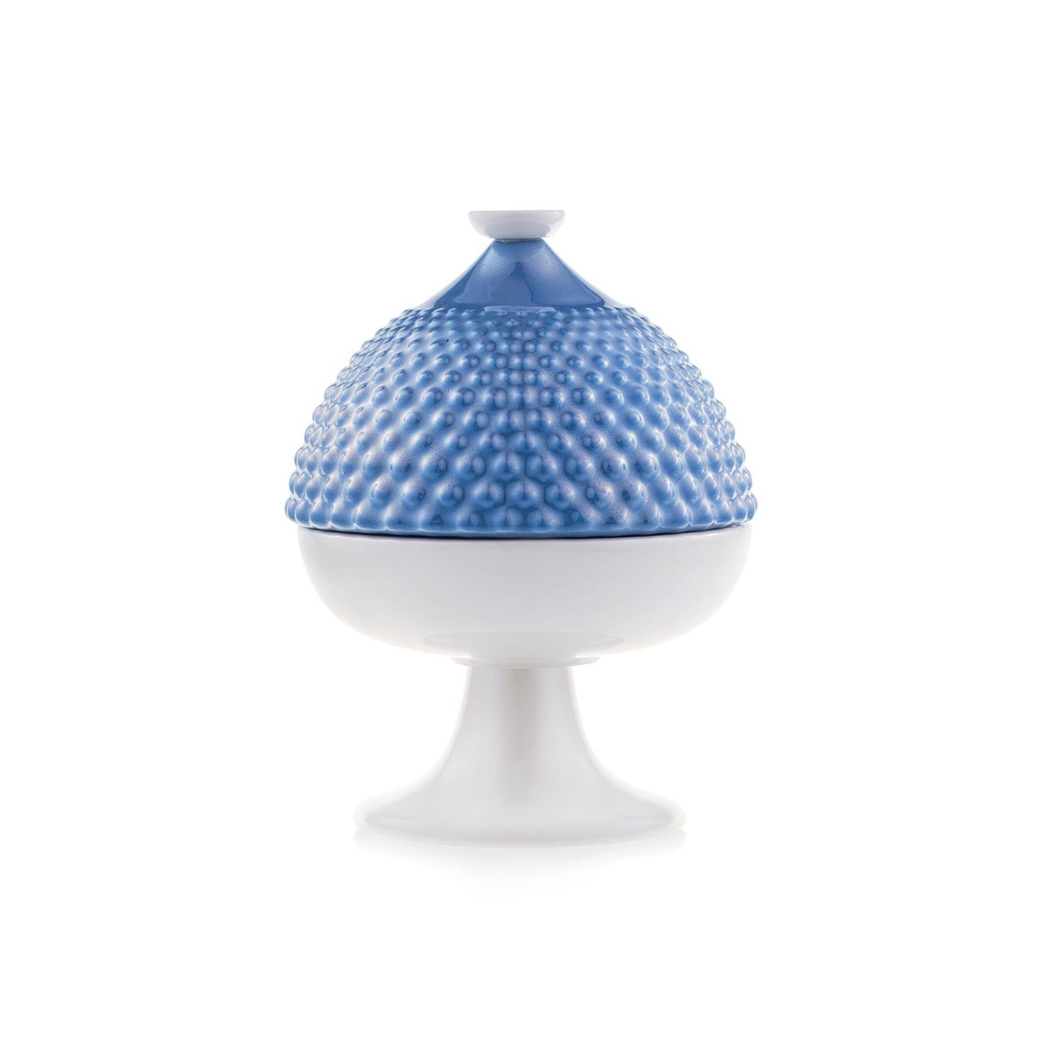 La scatola portaoggetti blu a forma di pumo di Emò Italia fa parte della collezione Segnali di Pumo, omaggio alla simbologia ancestrale pugliese. Infatti, il pumo è simbolo di prosperità ed abbondanza: ecco perché questa scatola decorativa è perfetta come bomboniera portafortuna!