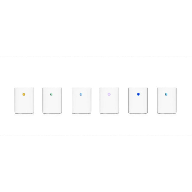 I colori assortiti portano allegria e personalità al servizio, mentre le forme delicate e la trasparenza del materiale esaltano ogni bevanda servita. Con un'altezza di 9 cm e un diametro di 7 cm, sono perfetti per acqua, succhi o long drink.
