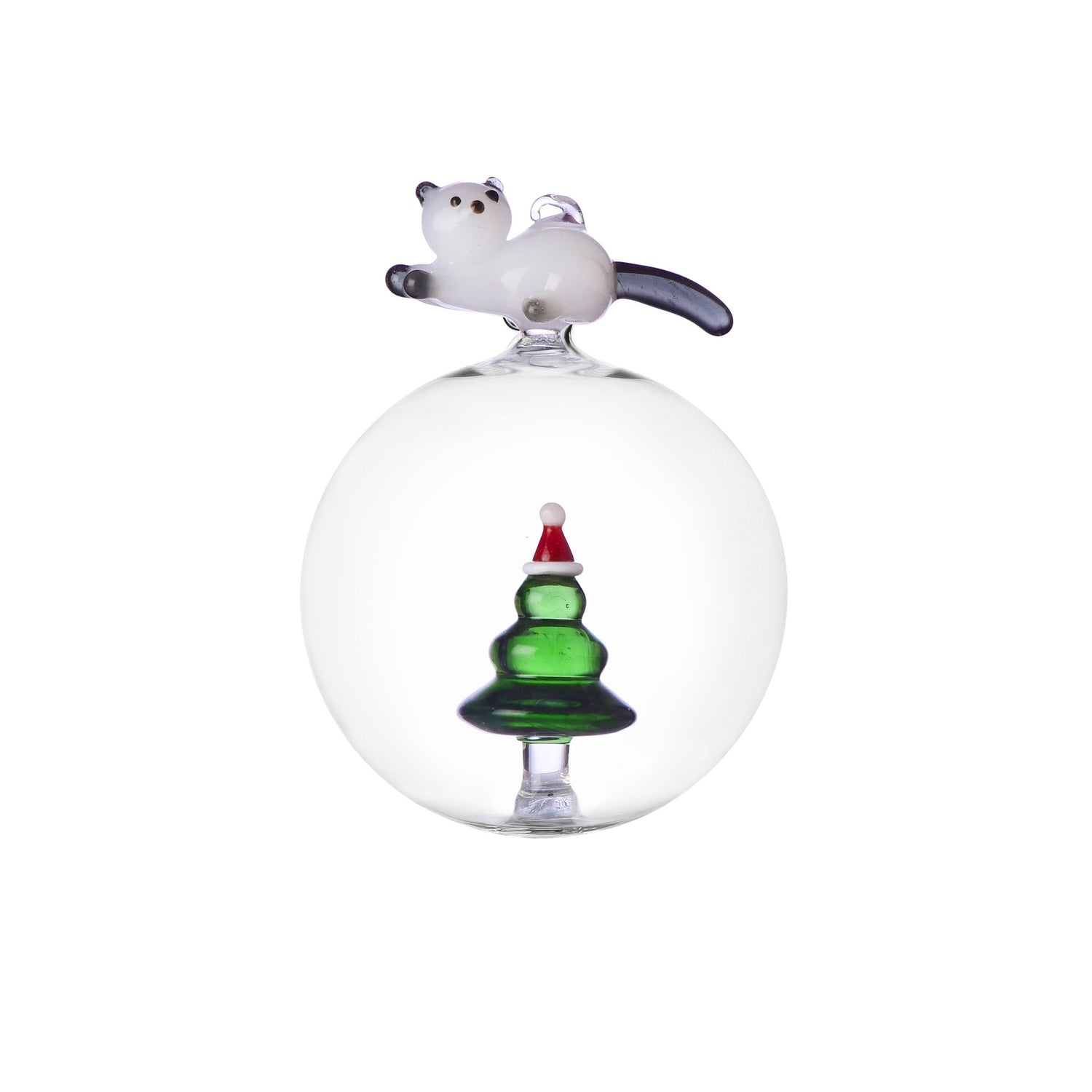 ICHENDORF Tabby Cat Christmas Edition Pallina di Natale Gatto e Albero di Natale 10,5cm Vetro Borosilicato