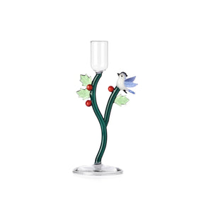 ICHENDORF Woodland Tales Candeliere Agrifoglio e Uccellino Azzurro 18,5cm Vetro Borosilicato