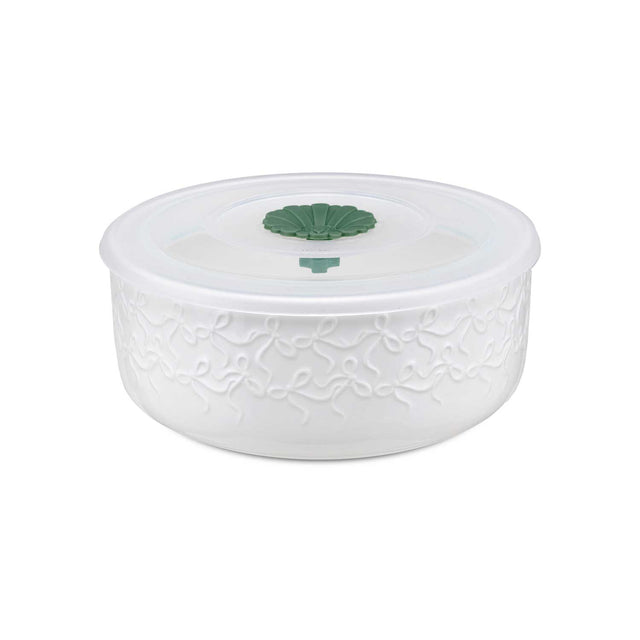 LA PORCELLANA BIANCA Intavola Contenitore Ermetico Porta Pranzo Fiocchi in Porcellana 13cm Bianco