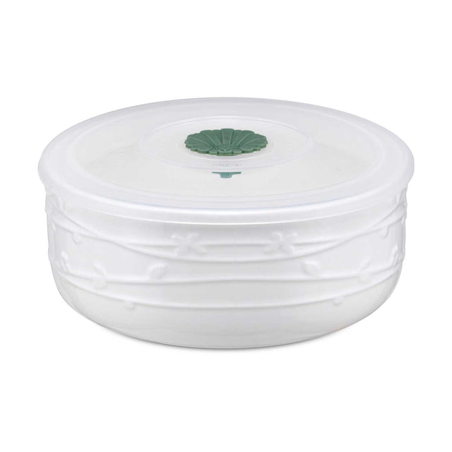 Il contenitore ermetico Intavola di La Porcellana Bianca con tappo in silicone è progettato per unire funzionalità e bellezza. Il corpo in porcellana bianca è impreziosito da un raffinato decoro con uccellini in rilievo, che dona personalità e delicatezza all’oggetto.