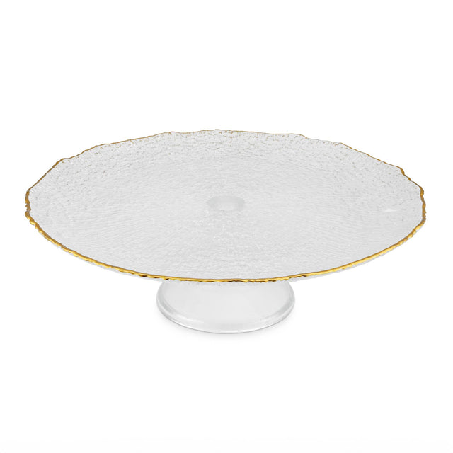 LA PORCELLANA BIANCA Maestà Alzata Piatto Torta con Piede Filo Oro 33cm Vetro