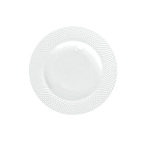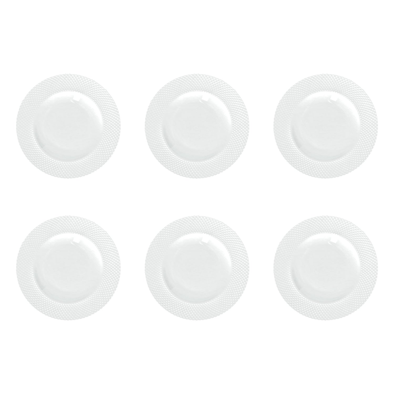 Il colore passepartout per eccellenza - il bianco - si abbina a un delicatissimo decoro a rilievo. Un motivo puntinato che orna ogni prodotto della collezione con indicibile grazia. Per una tavola in grado di richiamare bellezza ad ogni stagione. Set composto da 6 piatti.