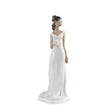 La sposa, realizzata in porcellana lucida, è raffigurata con un bouquet di fiori meticolosamente modellato petalo per petalo, aggiungendo un tocco di eleganza e realismo. La scultura poggia su una base in legno con finitura bianca opaca, fissata in modo permanente per garantire stabilità e durabilità nel tempo.