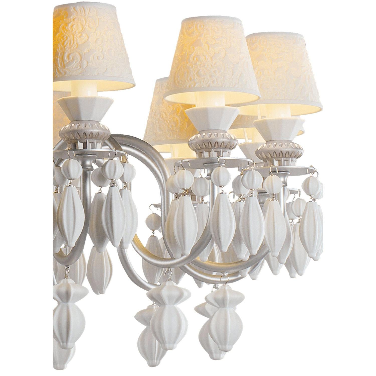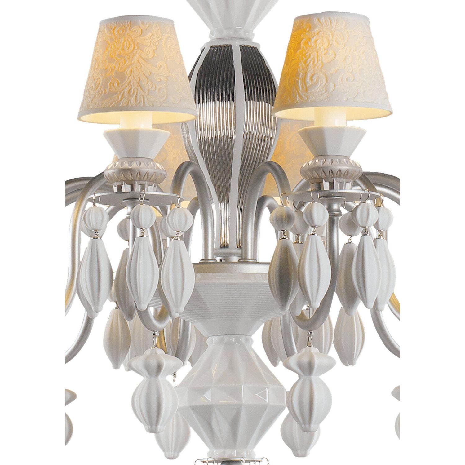 LLADRO' Chandelier Belle De Nuit 12 Luci Lustro Argento 100x65cm Porcellana