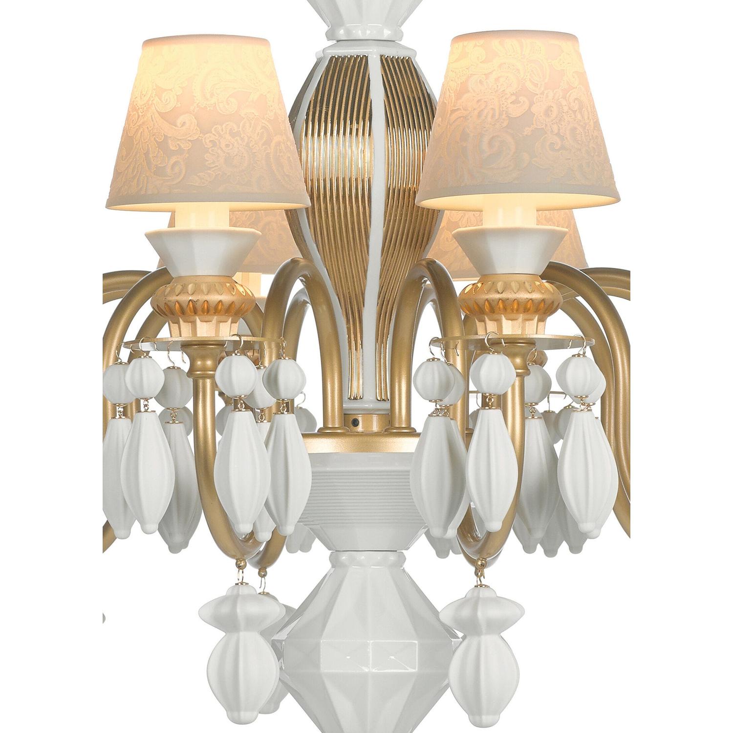 LLADRO' Chandelier Belle De Nuit 12 Luci Lustro Oro 100x65cm Porcellana