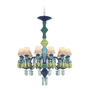 LLADRO' Chandelier Belle De Nuit 12 Luci Verde 100x65cm Porcellana