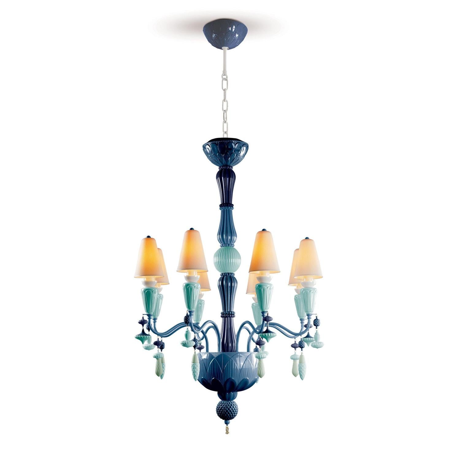 LLADRO' Chandelier Ivy e Seed 8 Luci Oceano 123x70cm Porcellana
