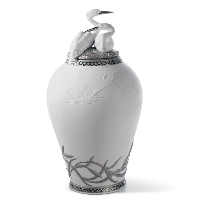 LLADRO' Figurina Anfora Aironi Cinerini Lustro Argento 30x17cm Porcellana