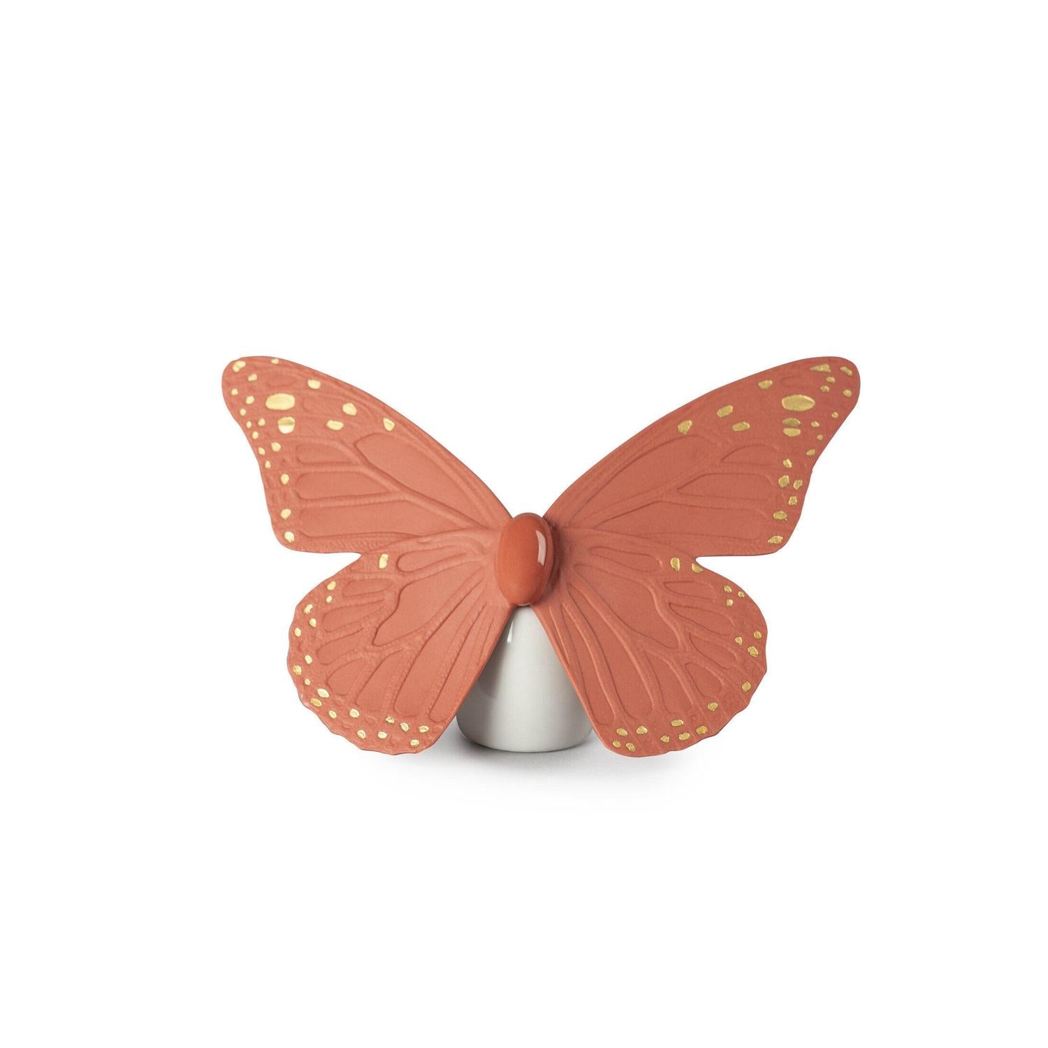 LLADRO' Figurina Farfalla Dorato Lucido e Corallo 9x14cm Porcellana