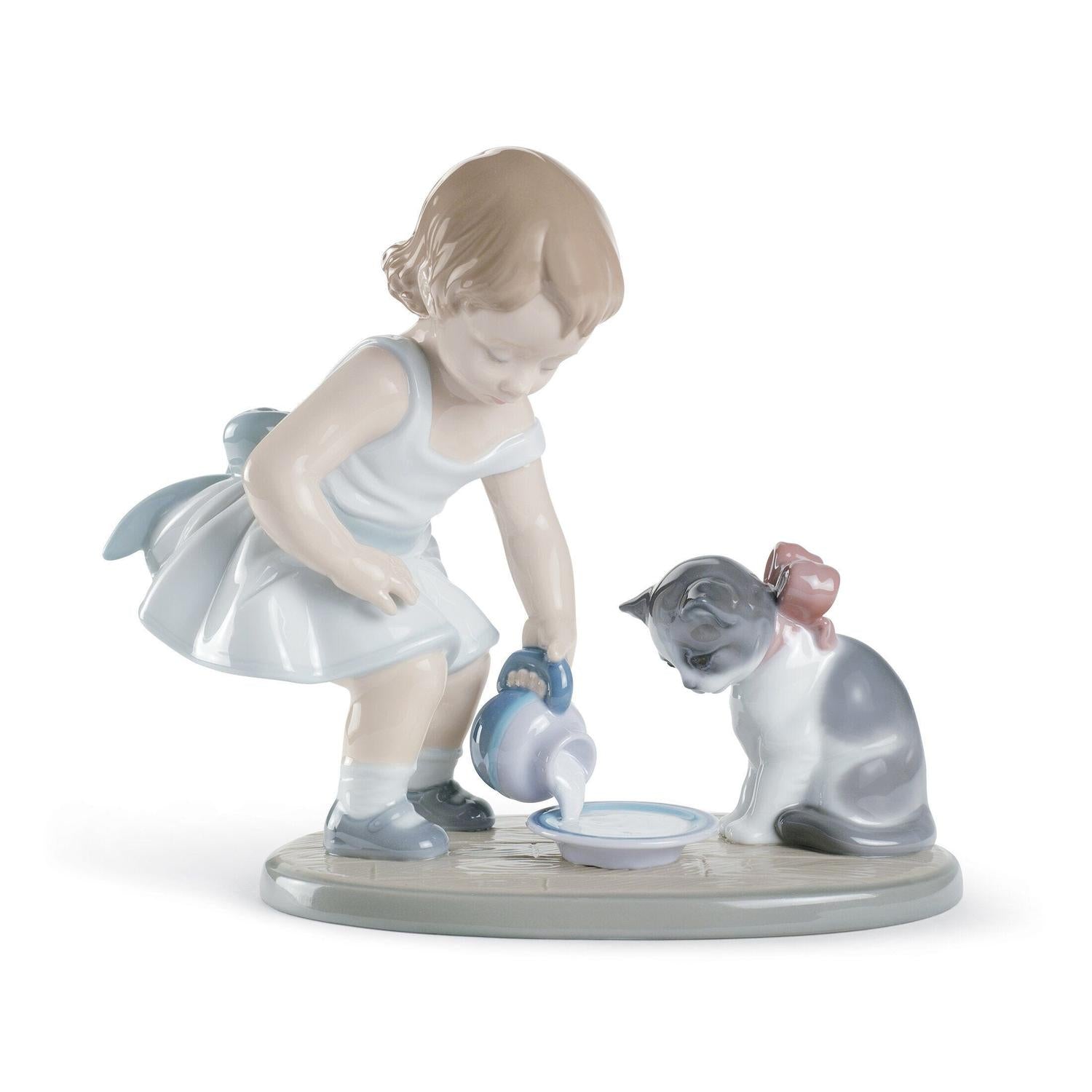 LLADRO' Figurina la Colazione Del Gatto 17x20cm Porcellana