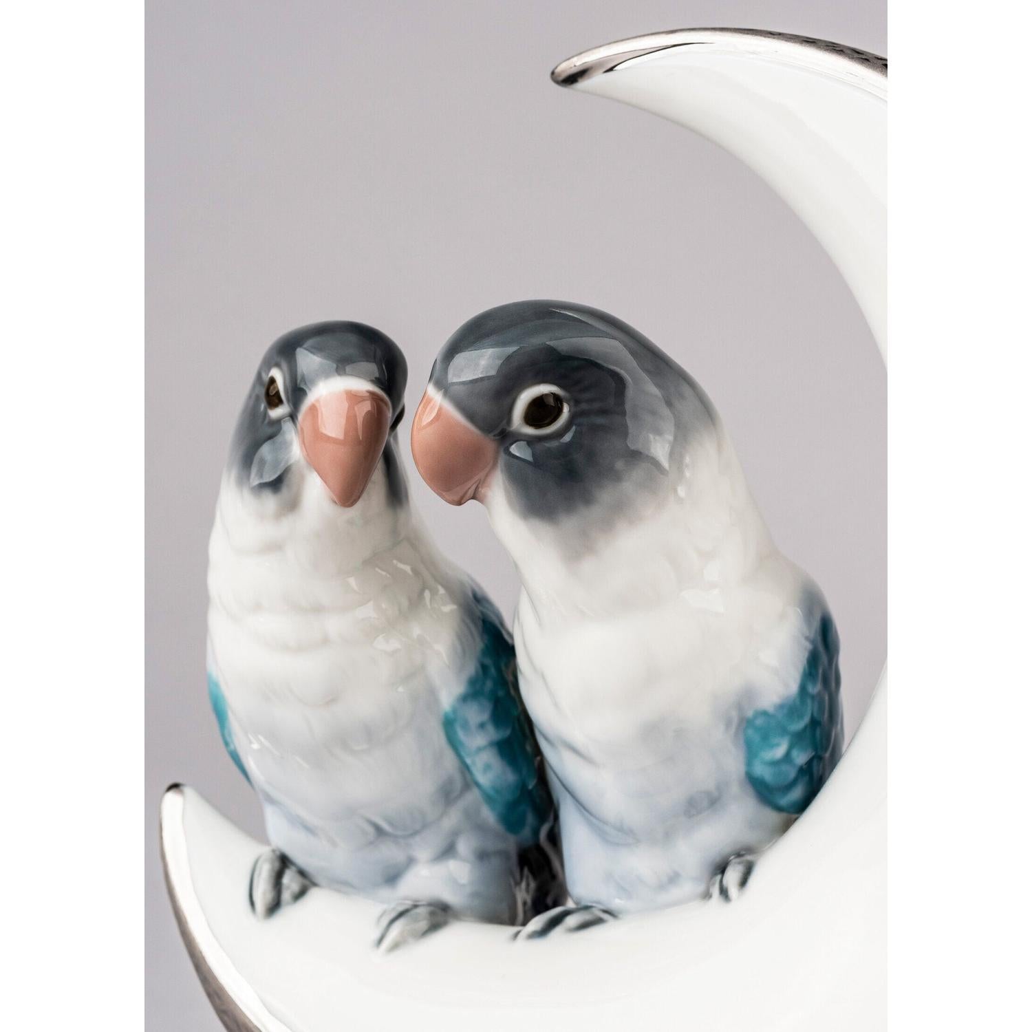 LLADRO' Figurina Uccelli Prendimi la Luna Lustro Argento 16x15cm Porcellana
