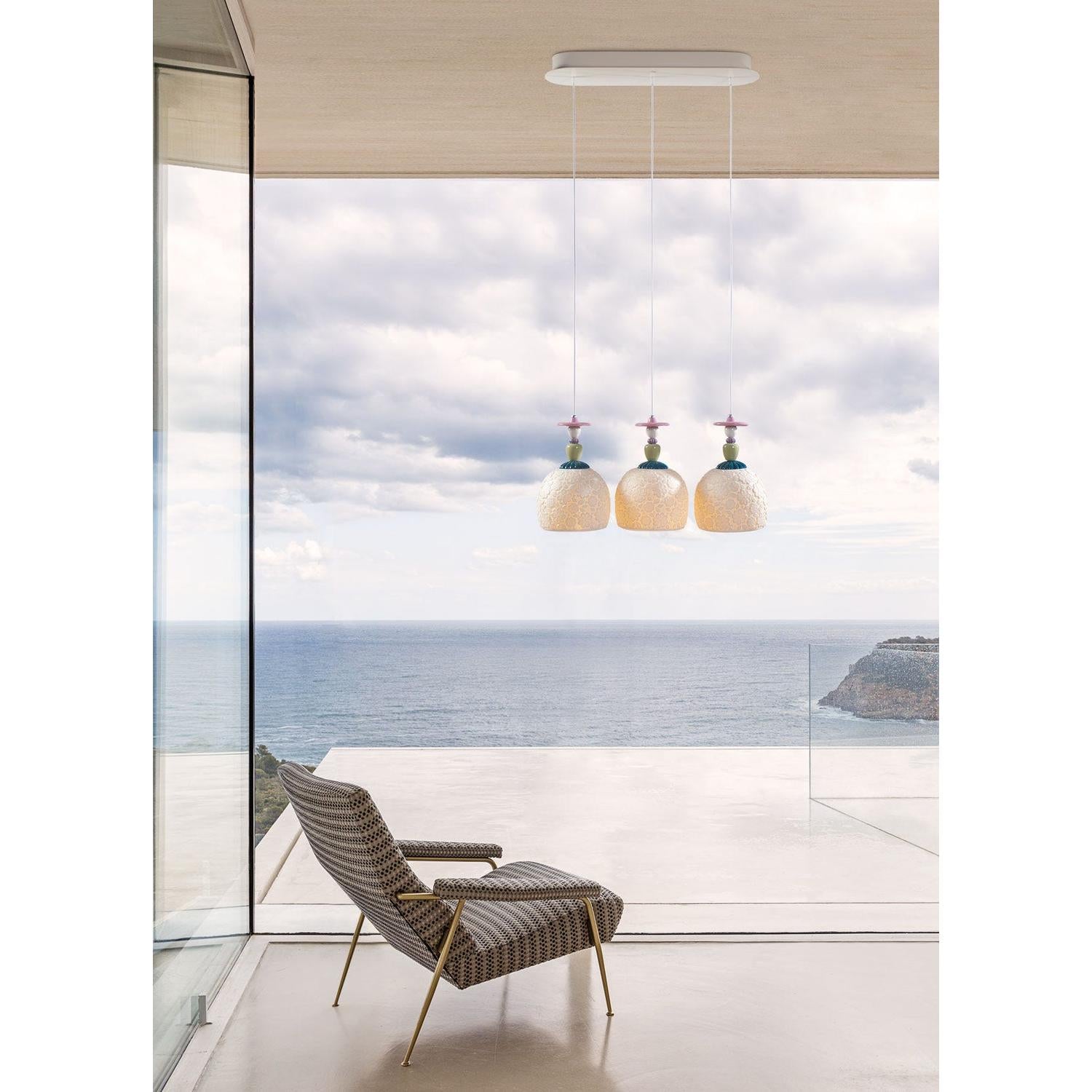 LLADRO' Lampadario Mademoiselle Composizione Lineare 3 Luci Contemplando L'Oceano 193x62cm Porcellana