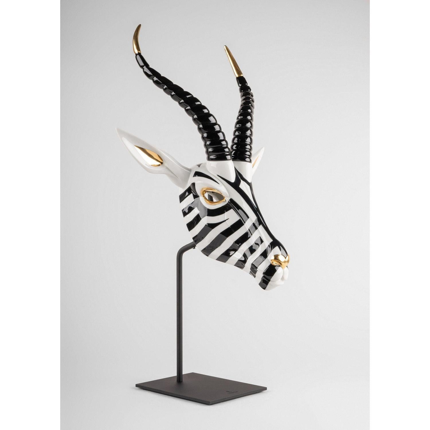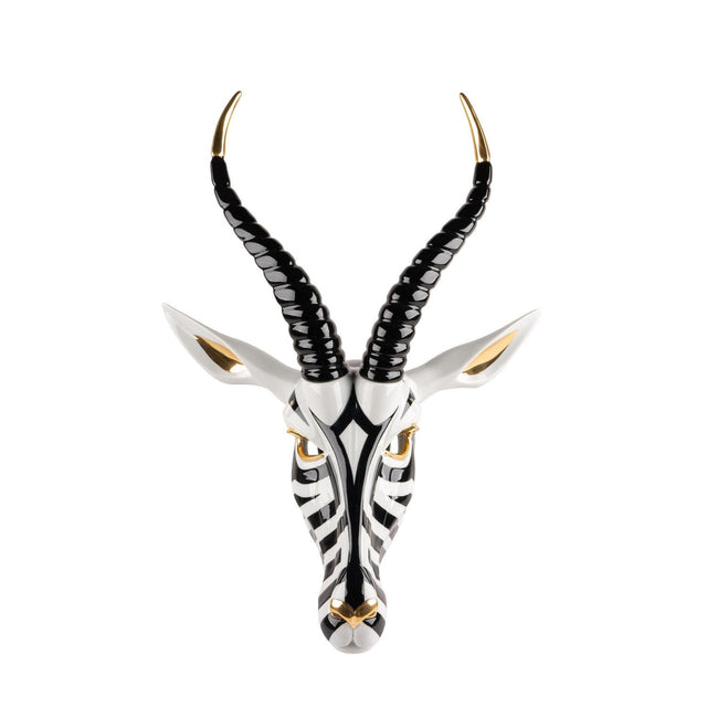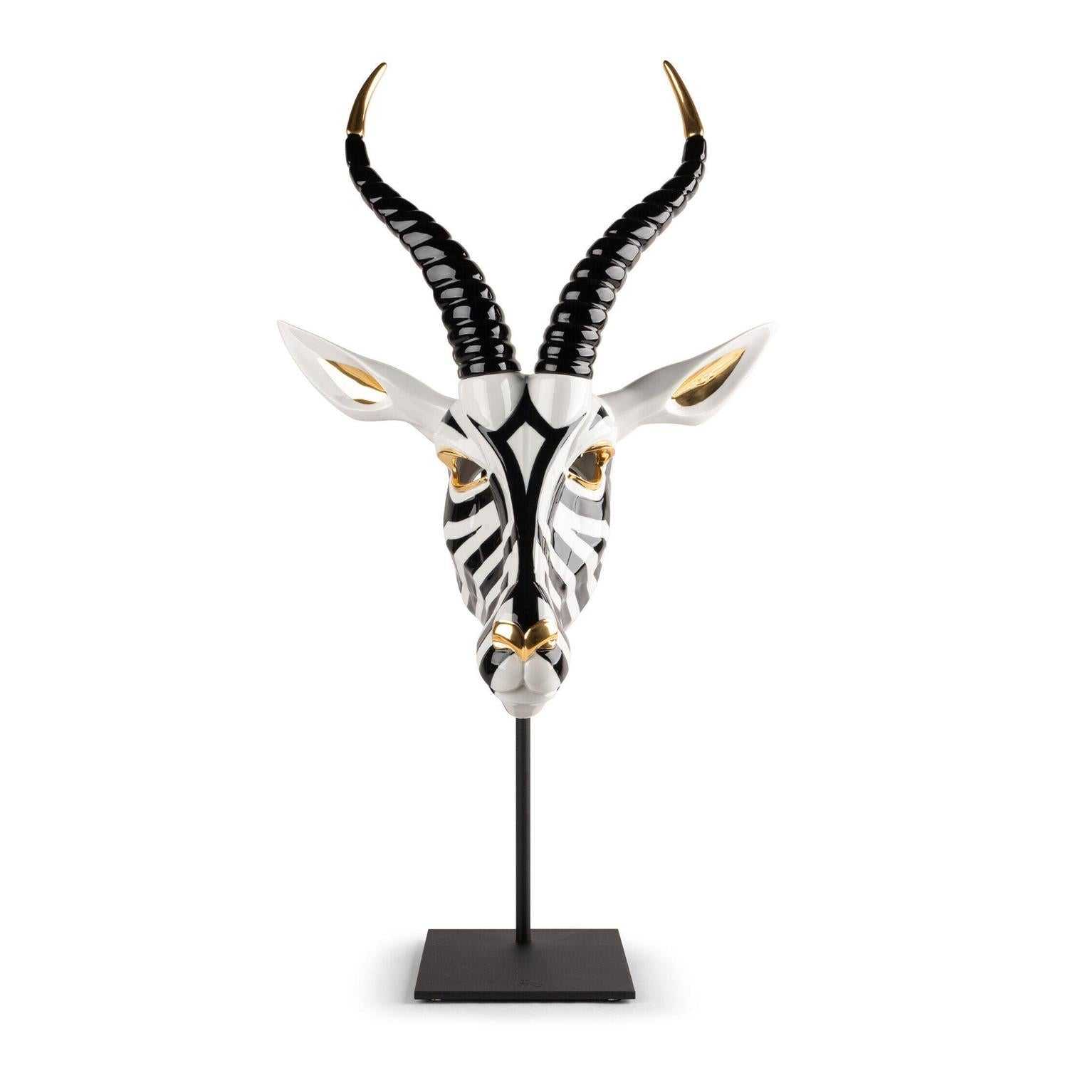 LLADRO' Maschera Antilope Nero Oro 57x39cm Porcellana