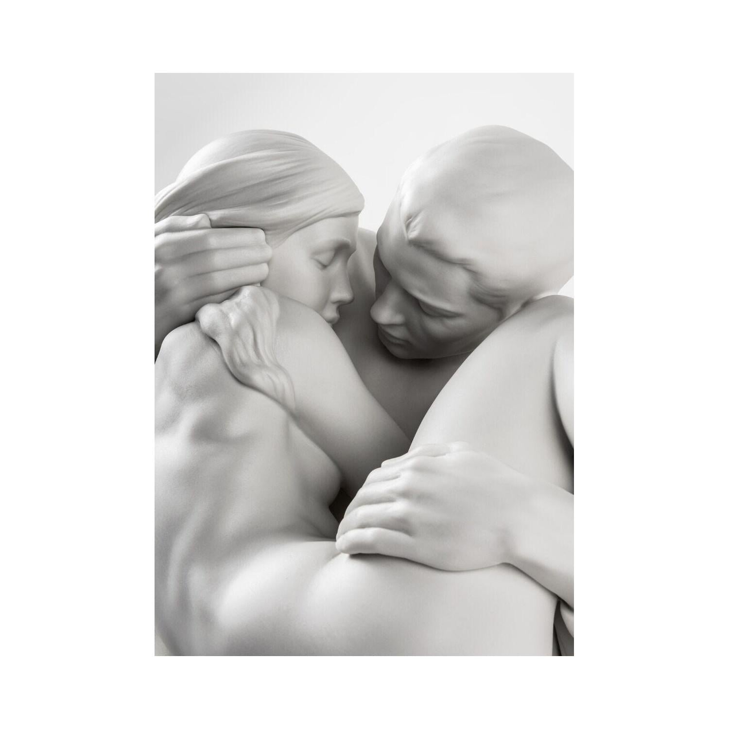 Realizzata in porcellana bianca opaca, questa scultura trova nel materiale il mezzo ideale per esprimere calore e riprodurre con precisione i dettagli dell'intreccio dei corpi.