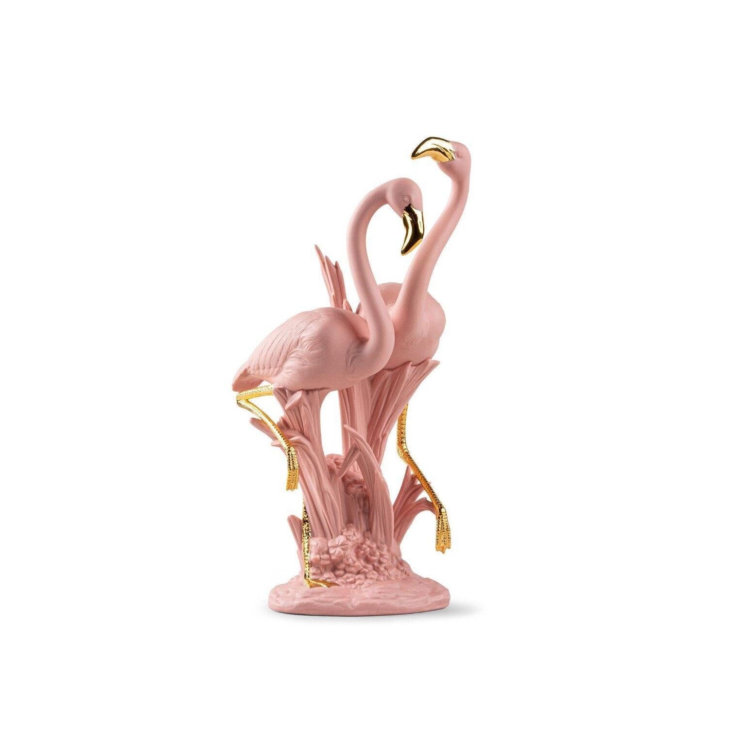 La simbologia che ruota attorno a questi uccelli e la loro anatomia unica hanno ispirato gli artisti di Lladró a creare una rappresentazione straordinaria. La loro opera è una coppia di fenicotteri realizzata in porcellana opaca, arricchita da una decorazione in rosa e lustro dorato. Il risultato è un'opera d'arte suggestiva e dal carattere decisamente contemporaneo, che cattura l'essenza elegante e misteriosa di questi affascinanti volatili.