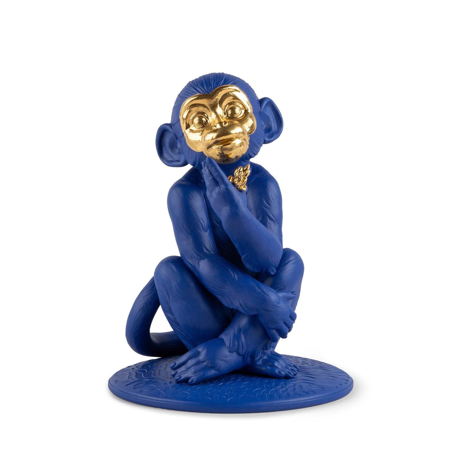 LLADRO' Scultura Piccola Scimmia Blu Oro Serie Limitata 23x17cm Porcellana