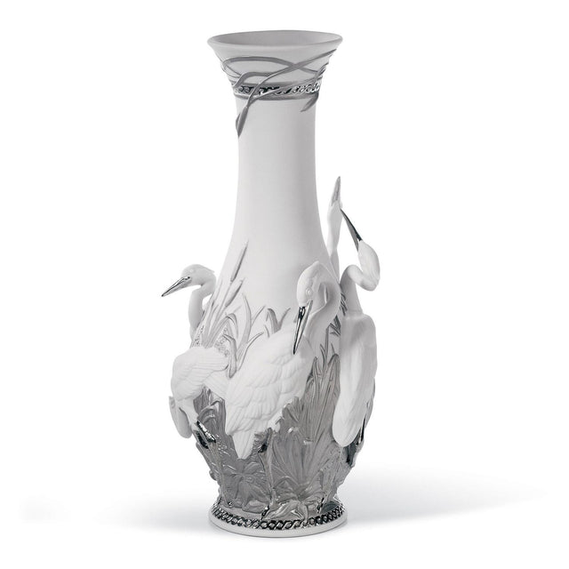 LLADRO' Vaso Aironi Cinerini Lustro Argento 35x17cm Porcellana