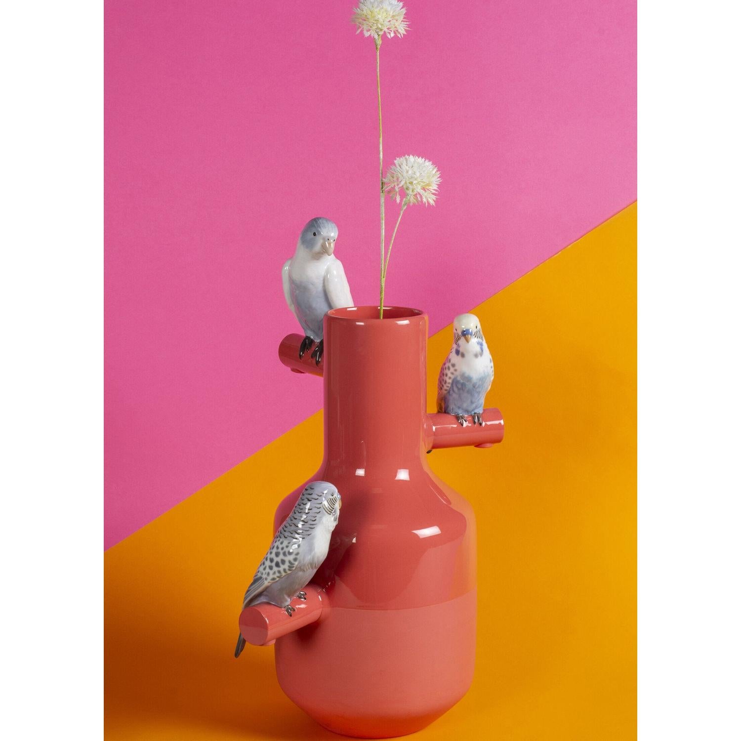 LLADRO' Vaso Parrot Parade Rosso Corallo 41x25cm Porcellana