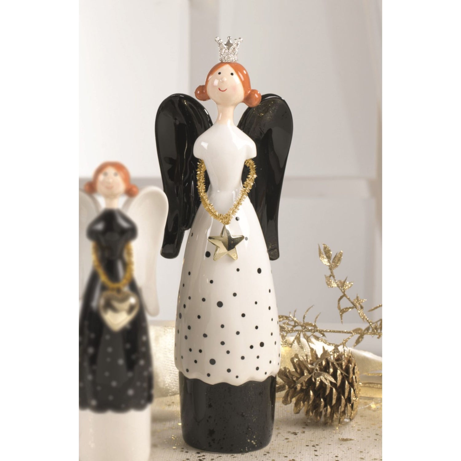 MASCAGNI CASA - Angelo di Natale Decorazione Natalizia Nero Oro Bianco 30,2 cm Ceramica