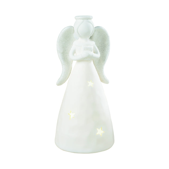 MASCAGNI CASA - Angelo LED Statuina Decorazione Natalizia Bianca 17,5 cm Ceramica