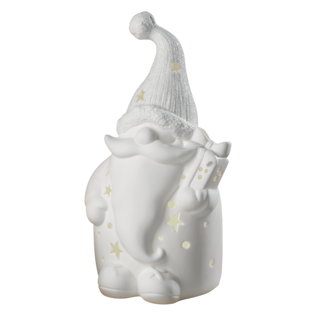 MASCAGNI CASA Babbo Natale con LED Decorazione Natalizia 20cm Ceramica Bianco