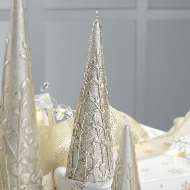 MASCAGNI CASA Candela Cono Decorata 20cm Decori in Rilievo Argento