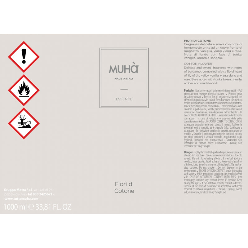 MUHA' Ricarica Refill 1000ml Profumatore D'Ambiente Fiori di Cotone