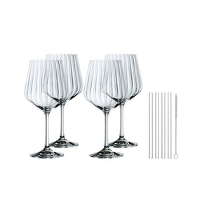 Set composto da 4 calici in cristallo + 4 cannucce in vetro.