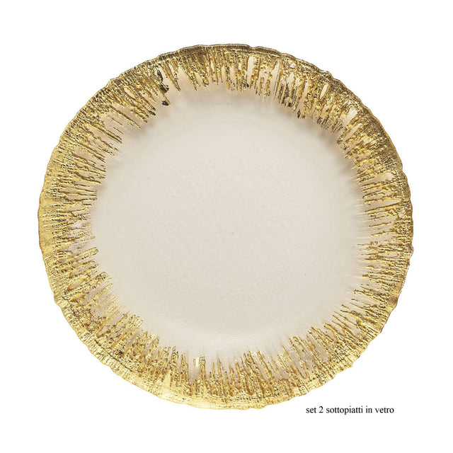 NOEL by Lamart Sottopiatto in Vetro Set 2 Pezzi 32cm Bianco Oro Tavola di Natale