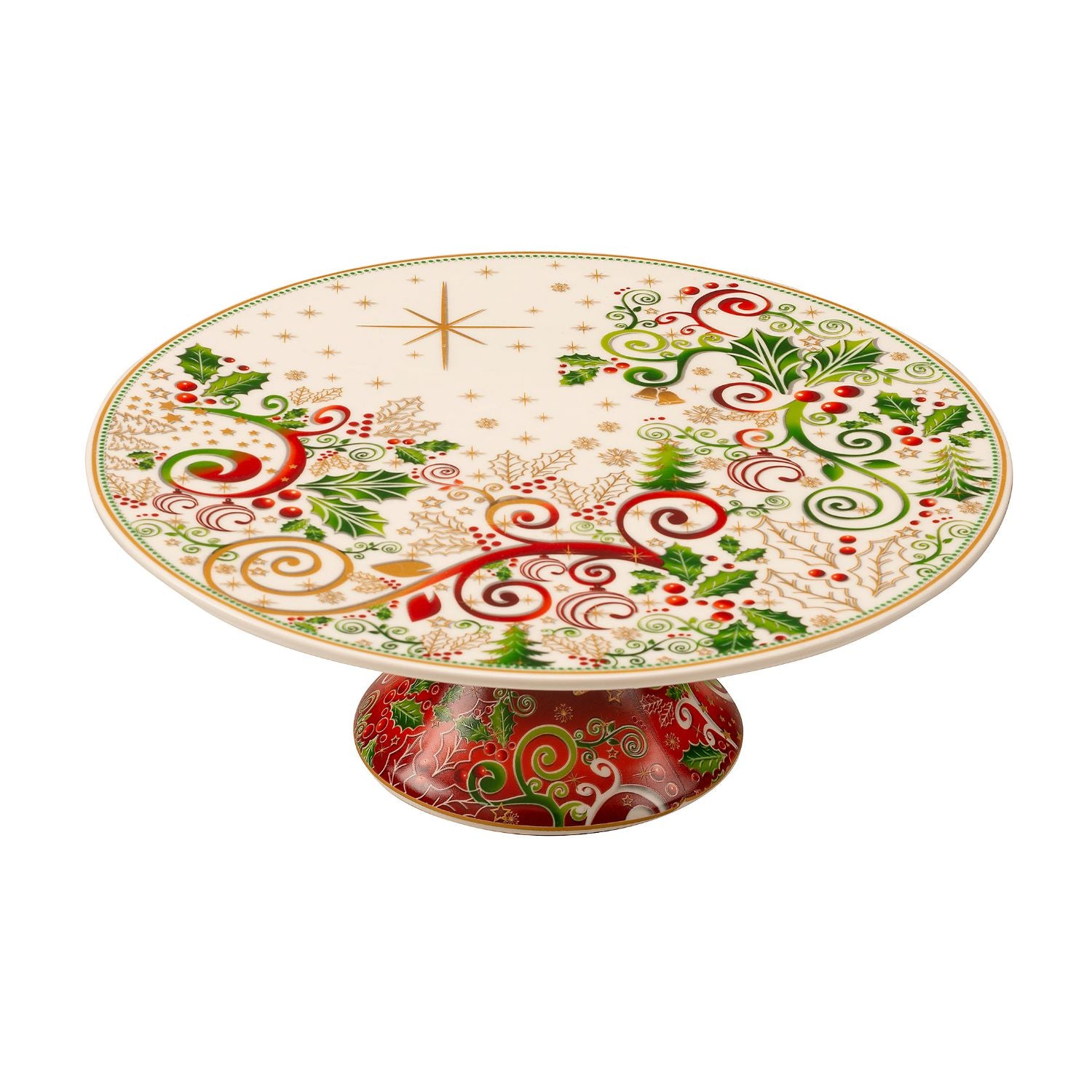 PALAIS ROYAL Alzata Piatto Torta 28x10cm in Porcellana Tavola di Natale