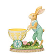 Aggiungi un tocco di fiaba alla tua decorazione pasquale con questo elegante coniglietto di Pasqua con carro di Palais Royal, realizzato in resina color crema con dettagli finemente dipinti. Con i suoi 36 cm di altezza, si distingue per la sua postura graziosa e il look raffinato, arricchito da un delicato gilet decorato e pantaloni a righe in tonalità pastello.