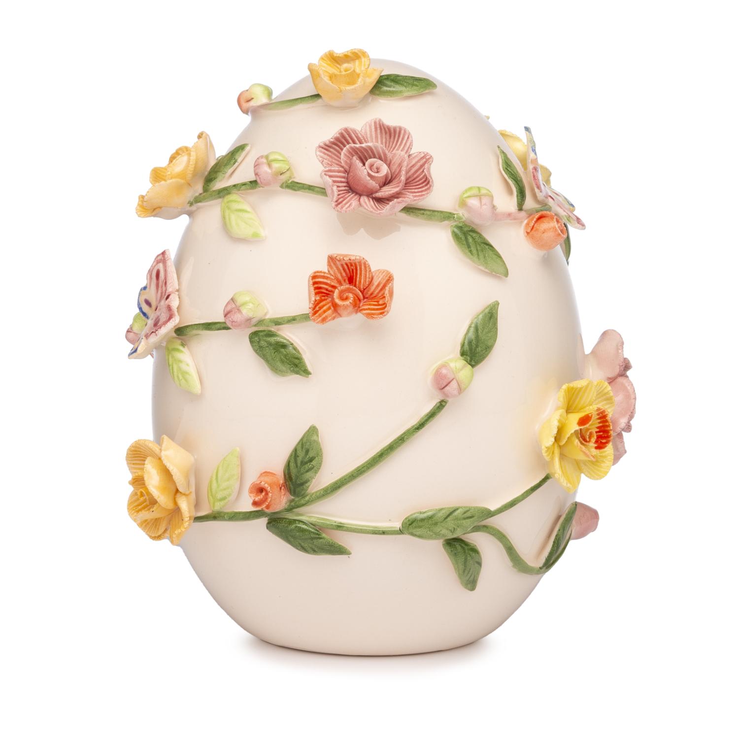 PALAIS ROYAL Decorazione Uovo Ovetto di Pasqua con Fiori 15cm Bianco Porcellana