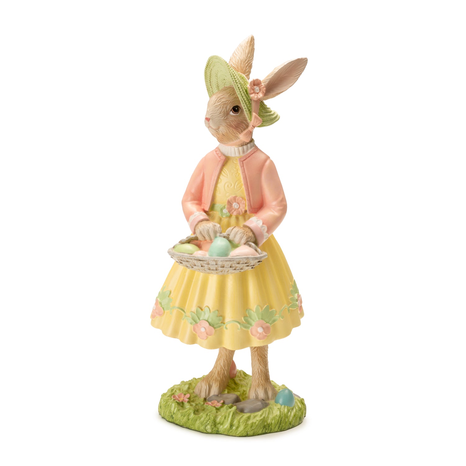 PALAIS ROYAL Figura Figurina Coniglio Rosa di Pasqua con Cestino 40cm Resina