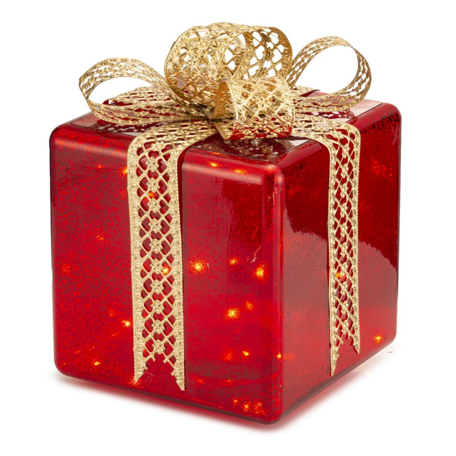 PALAIS ROYAL Pacco Regalo Rosso con LED Decorazione Natalizia 18x26cm Vetro