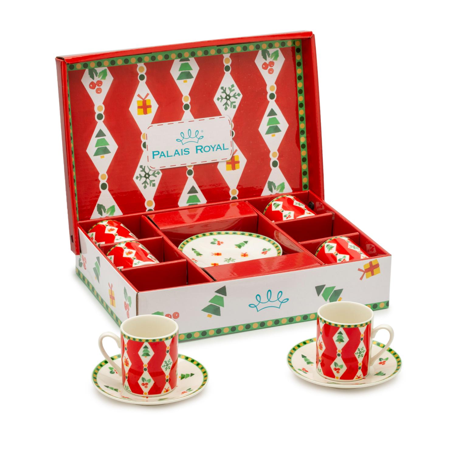 PALAIS ROYAL Tazzina Caffè Natalizia con Piattino Set 6 Pezzi 100ml Porcellana