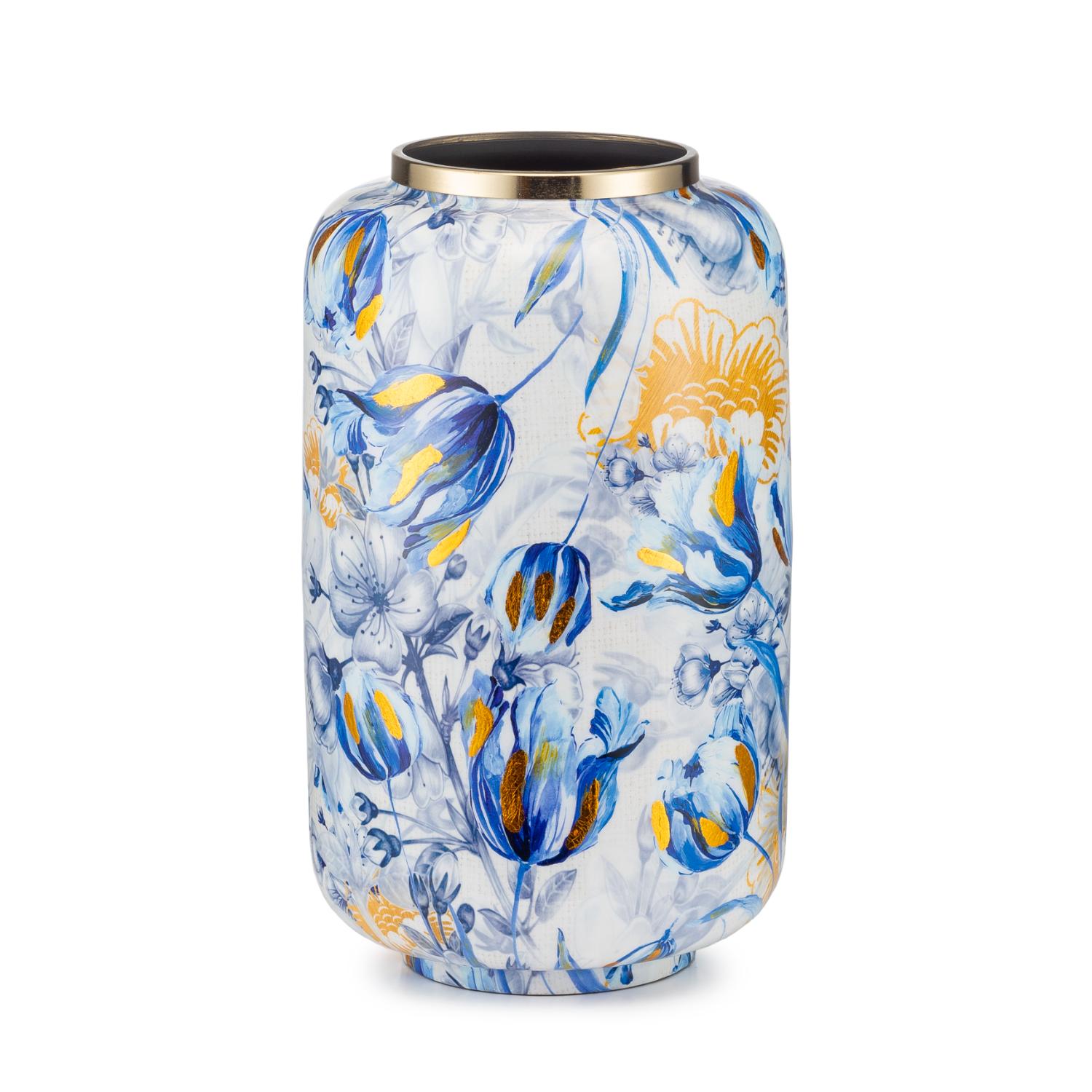 Scopri il fascino senza tempo del vaso Iris di Palais Royal, un pezzo che incarna l'eleganza e la raffinatezza. Realizzato in metallo bianco, questo splendido vaso alto 35 cm e con un diametro di 21 cm è impreziosito da delicate decorazioni di iris azzurri, che portano un tocco di freschezza e vitalità in ogni ambiente.